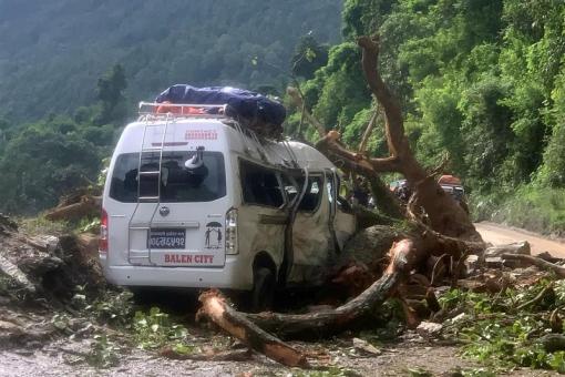 गुडिरहेको माइक्रो बसमाथि रुख खस्दा ९ जना घाइते