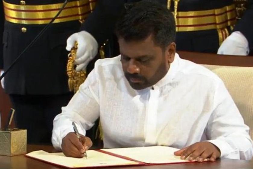 राष्ट्रपति कार्यालयमा उनलाई प्रधानन्यायाधीश जयन्थ जयसूर्याले नवौं कार्यकारी राष्ट्रपतिको रुपमा शपथ दिएका हुन् । राष्ट्रपतिको चुनामा राष्ट्रिय जनशक्ति नेता अनुराले ५७ लाख ४० हजार १ सय ७९ मतसहित विजयी भएका थिए ।