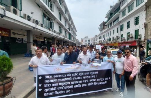 सुनमा लगाइएको दुई प्रतिशत विलासिता कर खारेजीको माग गर्दै प्रदर्शन
