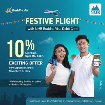 बुद्ध भिसा डेबिट कार्डबाट फ्लाइट टिकट किन्दा एनएमबि बैंकका ग्राहकलाई ५०० रुपैयाँसम्म छुट
