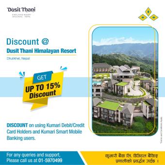 कुमारी बैंकका ग्राहकलाई दूसित थानी हिमालयन रिसोर्टमा १५ प्रतिशत छुट