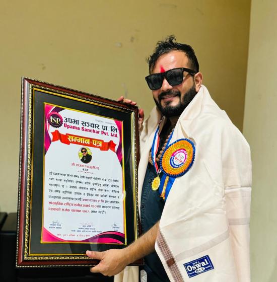 काठमाडौं । गितकार साजन दशक सर्जक सम्मानबाट सम्मानित हुनुभएको छ । बिहिबार चलचित्र विकास बोर्डको सभाहलमा उपमा सञ्चार प्रालीको आयोजनामा उहाँलाई सास्कृतिक राष्ट्रिय संगित अवार्ड २०८१को अवसरमा दशकको सर्जक सम्मान प्रदान गरिएको हो ।