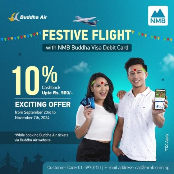 बुद्ध भिसा डेबिट कार्डबाट फ्लाइट टिकट किन्दा एनएमबि बैंकका ग्राहकलाई ५०० रुपैयाँसम्म छुट