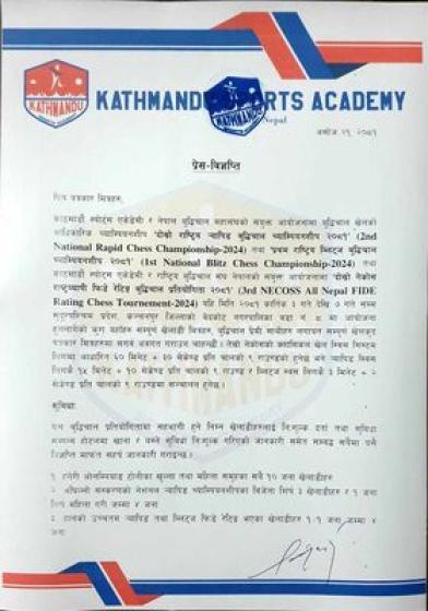 नेपाल बुद्धिचाल महासंघका केन्द्रीय सदस्य राजु ताम्राकारले विभिन्न आधिकारिक राष्ट्रिय प्रतियोगिता सम्पन्न गर्ने क्रममा ब्लिट्ज र र्यापिड राष्ट्रिय स्पर्धाको सम्पूर्ण जिम्मेवारी काठमाडौं स्पोर्ट्स एकेडेमीलाई प्रदान गरेको बताए।