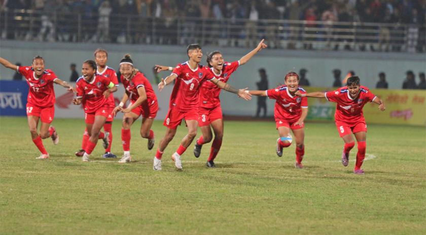काठमाडौं । भारतलाई पेनाल्टी सुटआउटमा हराउँदै नेपाल दशरथ रंगशालामा जारी साफ वुमन्स च्याम्पियनसिपको फाइनलमा प्रवेश गरेको छ । निर्धारित समयमा १/१ को बराबरीमा सकिएपछी खेल पेनाल्टी सुटआउटमा धकेलिएको थियो ।