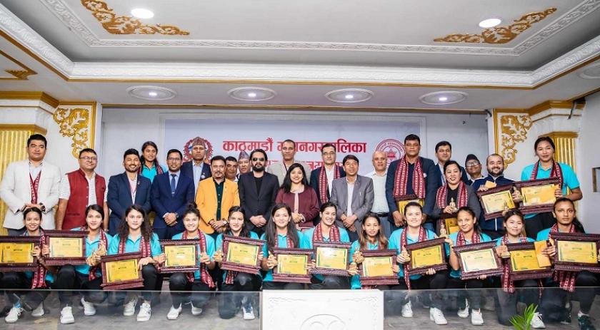 महानगरपालिकाले नेपाली टोलीका खेलाडी, प्रशिक्षक, टिम म्यानेजर र थेरापिस्टलाई प्रोत्साहन गर्न नगदसहित सम्मानपत्र प्रदान गरेको हो ।सम्मान प्राप्त गर्ने खेलाडीहरूमा कप्तान अरुणा शाहीसहित निरुता ठगुन्ना, शान्तिकला तामाङ, सरस्वती चौधरी, सुमित्रा रेग्मी, उषा भण्डारी, कविता भट्ट, कामना विष्ट, संगम महतो, साफिया पुन, आरती सुवेदी, पुनम चन्द, प्रगति नाथ र सलिना श्रेष्ठ छन् ।