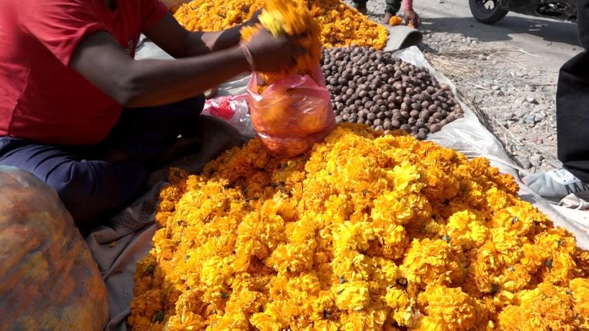 तिहार आएसँगै सयपत्री फूलको माला किन्नेहरुको भीड