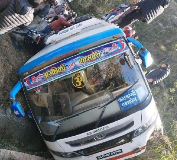 दोलखाबाट काठमाडौं आउँदै गरेको बस सिन्धुपाल्चोकमा दुर्घटना