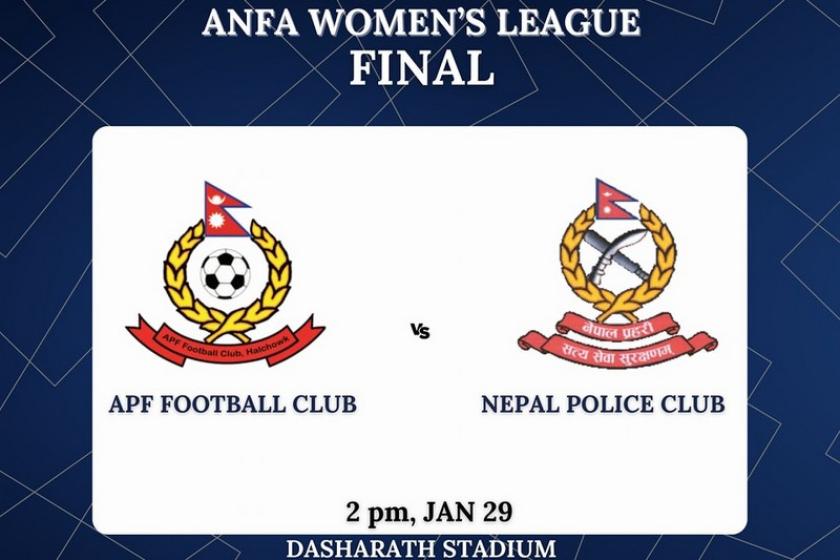 काठमाडौं । एन्फा महिला लिगको उपाधिका लागि दुई विभागीय टिम सशस्त्र प्रहरीको एपीएफ र नेपाल पुलिस क्लबबीच प्रतिस्पर्धा हुने भएको छ ।