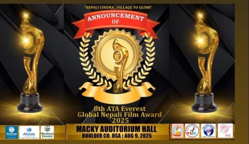 काठमाडौं । एटिए एभरेस्ट ग्लोबल नेपाली फिल्म अवार्डको आठौं संस्करण अमेरिकाको कोलोराडो आगामी २०२५ अगस्ट ९ तारिखका दिन अमेरिकाको कोलोराडोस्थित बोल्डरमा हुने भएको छ । काठमाडौंमा आयोजित विशेष समारोहका बीच ग्लोबल नेपाली फिल्म अवार्डको आठौं संस्करणको मिति घोषणा गरिएको हो ।