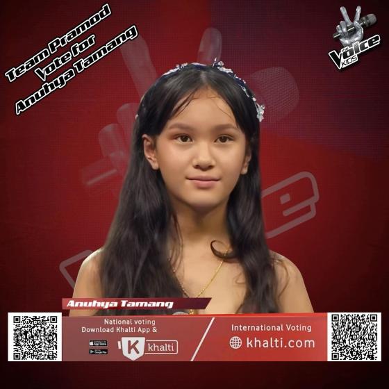 अनुया तामाङ ‘द भ्वाइस किड्स’को फाइनलिस्टमा, भोट गरेर जिताउन भुटानी समुदायको आग्रह