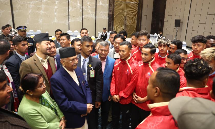 प्रधानमन्त्री र केपी ओली कप फुटबल च्याम्पियनसिपका खेलाडीबीच भेट