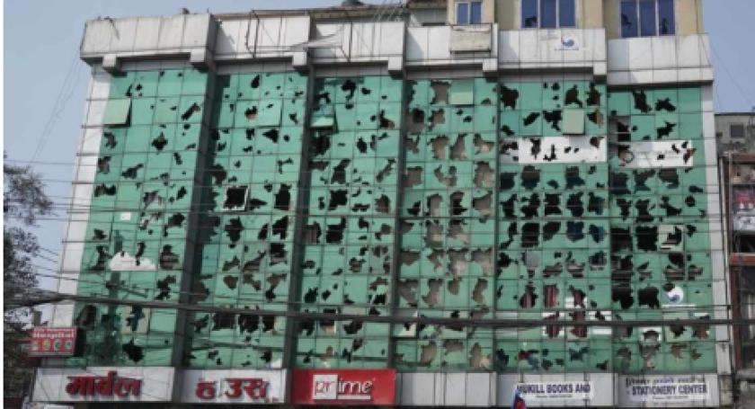 काठमाडौं । काठमाडौंको तीनकुनेमा राजावादीहरूले व्यक्तिका घरको सिसा छियाछिया हुनेगरी फुटाएका छन् ।