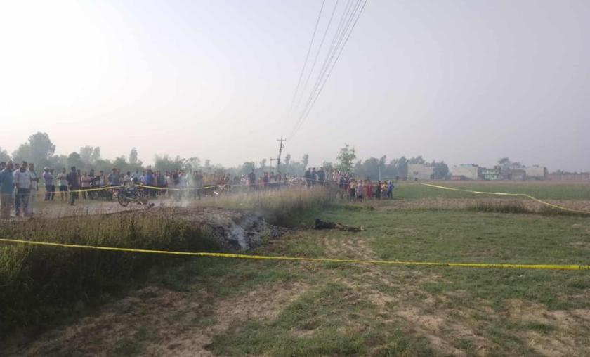 प्रहरीका अनुसरा सडक नजिकै तोरीको भुसमा आगोले जलिरहेको अवस्थामा मोटरसाइकल र नजिकै जलेको अवस्थामा शव भेटिएको जनाएको छ ।