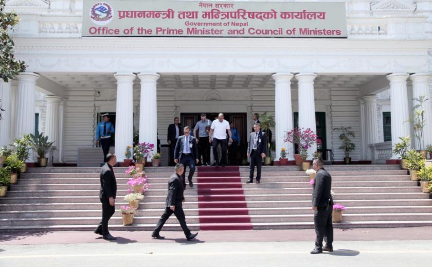 काठमाडौं । प्रधानमन्त्री केपी शर्मा ओली र ब्राजिलियन लेजेण्ड फुटबल खेलाडी रोबर्टो कार्लोसबीच भेट भएको छ । बुधवार प्रधानमन्त्री त्था मन्त्रीपरिषद्को कार्यालय सिंहदरबारमा प्रधानमन्त्री ओलीसँग फुटबल खेलाडी रोबर्टो कार्लोसले भेट गर्नुभएको हो ।