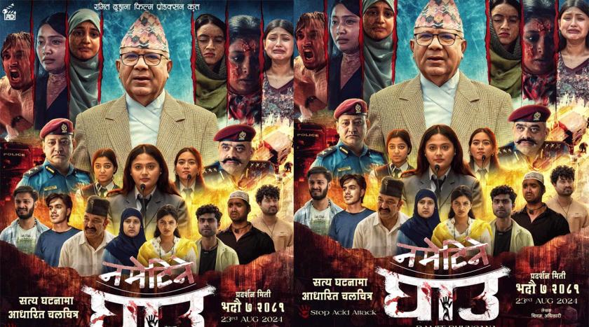 काठमाडाैं । तेजाव आक्रमणमा परेका पीडितहरुको वास्तविक कथालाई आधार बनाइ तयार गरिएको चलचित्र ‘नमेटिने घाउ’ भदौ ७ गतेदेखि प्रदर्शनमा आउने भएको छ । चलचित्र आगामी शुक्रवारदेखि नेपालभर एकैसाथ प्रदर्शनमा आउने भएको हो ।