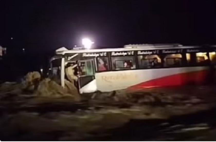 विनयी खोलामा बाढीले बस बगायो, यात्रु सकुशल