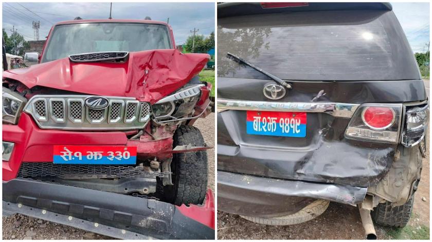 कैलालीको लम्कीमा भौतिक पूर्वाधार विकासमन्त्री सुरेन्द्र पाल र आन्तरिक मामिला तथा कानुनमन्त्री हिरासिंह सार्की सवार गाडी एकापसमा ठोक्किएर दुर्घटना भएको हो ।