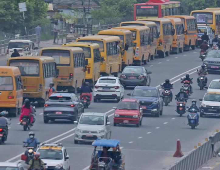 चक्रपथको एक लेनमा निजी विद्यालयहरुका बसहरु लस्कर लागेका छन् ।