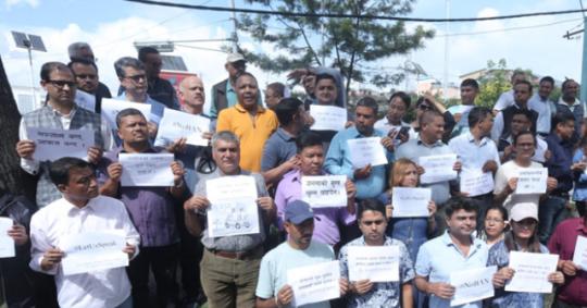 पत्रकारहरूले गरे सरकारले सामाजिक सञ्जालमा लगाएको प्रतिबन्धको विरोध