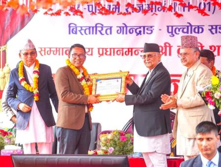निर्माण व्यवसायी खड्कालाई प्रधानमन्त्रीले गरे सम्मान, असल व्यवसायी भएको भन्दै प्रधानमन्त्रीले गरे प्रशंसा
