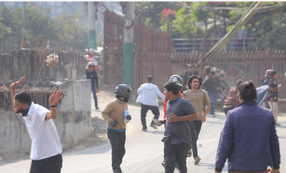 राजावादी प्रदर्शनकारी माओवादी पार्टी कार्यालयमा प्रवेश गर्ने प्रयास गर्दै