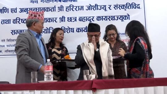 ललितपुर महानगरद्वारा जोशी र कायस्थ सम्मानित, आजीवन सवारीसाधन, सुरक्षाकर्मी र सञ्चारसाधनको व्यवस्था