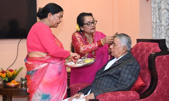 राष्ट्रपति पौडेलले लगाए बहिनीबाट तिहारको टीका